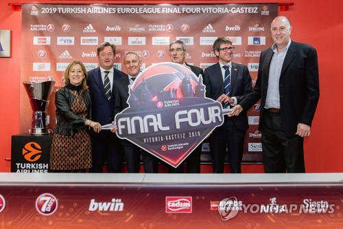 Basketball Euroleague's president Jordi Bartomeu (3-R) poses with Baskonia's president Josean Querejeta (R) along with institutional representatives during the official launching of Euroleague's Final Four logo, in Vitoria, Basque Country, northern Spain, 20 February 2018. The Final Four, the last stage of Euroleague, will take place in Vitoria from 17 to 19 May 2019. EPA/Jon Rodriguez Bilbao
