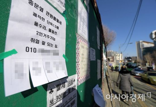 ▲새학기를 앞둔 7일 서울 동작구 흑석동 한 대학교 앞에 원룸, 하숙방 안내 전단지가 빼곡히 붙어 있다. /문호남 기자 munonam@[아시아경제 박민규 기자] 정부가 전월세도 주택 매매거래처럼 실거래가 신고를 의무화하는 방안을 추진한다.