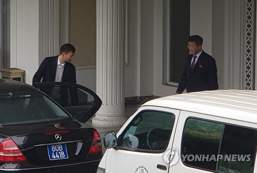 김 대표는 이어 비건 대표의 숙소인 '파르크 호텔'에 도착했다. 두 숙소는 차량으로 10여분 거리다.