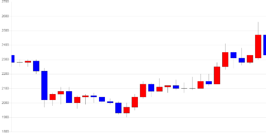 최근 1개월 고점은 2,650원이었으며, 현재 가격은 고점 대비 87.55% 수준이다.