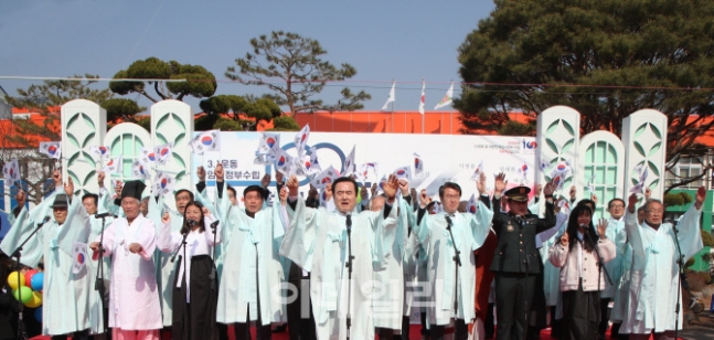 [이데일리 방인권 기자] 3·1절 100주년인 1일 경남 함양군 함양읍 일원에서 제100주년 3.1절 기념행사가 진행되고 있다. 함양군 제공.