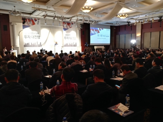 <사진: 한국경제TV가 주최하고 K-VINA비즈센터 및 캄폿글로벌이 공동 주관한 국내 첫 캄보디아 투자전략 컨퍼런스에 구름 관중이 몰려 높은 관심을 나타냈다>2월 27일 오후 서울 프리마호텔에서 열린 컨퍼런스에는 3백여석 좌석이 모자를 정도로 많은 투자자들이 참여해 끝까지 경청했다.