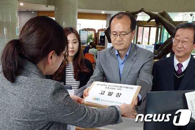 (광주=뉴스1) 전원 기자 = 고영삼 광주경제정의실천시민연합회 사무처장이 17일 오전 광주지검에서 광주시가 추진 중인 민간공원특례(2단계)사업과 관련한 각종 의혹을 규명해 달라는 내용의 고발장을 접수하고 있다. 2019.4.17/뉴스1