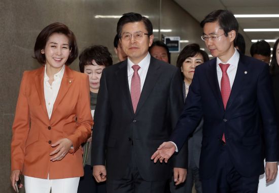 17일 오전 서울 영등포구 여의도 국회에서 열린 자유한국당 최고위원·중진의원 연석회의에 황교안 대표와 나경원 원내대표 등 지도부가 참석하고 있다.