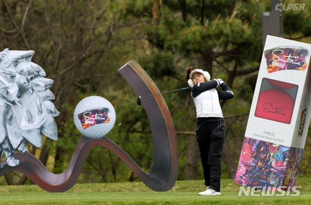 【서울=뉴시스】19일 경남 김해에 위치한 가야 컨트리클럽 신어(OUT)낙동(IN)코스에서 열린 넥센 세인트나인 마스터즈 2019 1라운드 18번홀에서 이소영이 티샷을 하고 있다. 2019.04.19. (사진=KLPGA 제공)