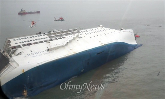 완전히 뒤집어져서 세월호의 뱃때기를 다 만 천하에 다 보여줬죠.