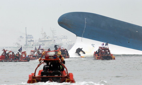 세월호가 배때기를 완전히 다 보여주고 있었습니다.