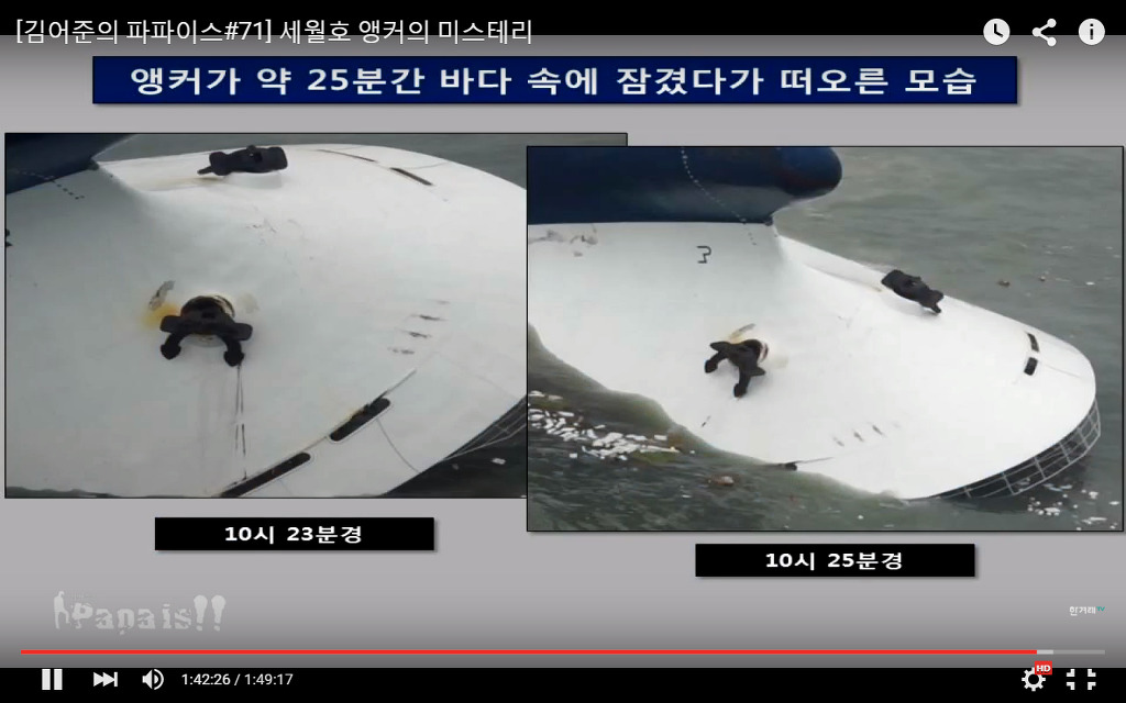 닻을 내려 고의침몰시켰다는 김어준의 주장은 자로님의 주장보다