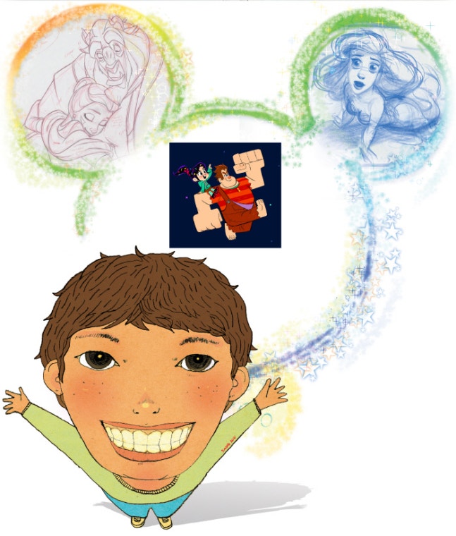 <미녀와 야수>(1989)(위 왼쪽), <인어공주>(1989)(위 오른쪽), <주먹왕 랄프2: 인터넷 속으로>(2018)(아래) ⓒ Disney Enterprises Inc 일러스트