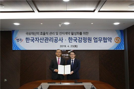 [디지털타임스 이상현 기자] 한국감정원은 부산국제금융센터(BIFC)에서 한국자산관리공사(캠코)와 '국유재산의 효율적 관리 및 전자계약 활성화'를 위한 업무협약을 체결했다고 23일 밝혔다.