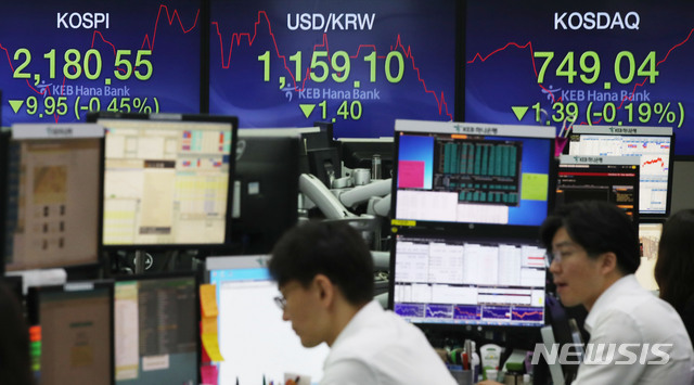 이를 반영하듯 국내 증시는 최근들어 눈에 띄게 하락세를 보이고 있는 중이다. 코스피지수는 전 거래일(2190.50)보다 12.37포인트(0.56%) 내린 2178.13에 출발했다. 지수는 약보합으로 개장한 후 내림세 구간을 횡보하고 있다.